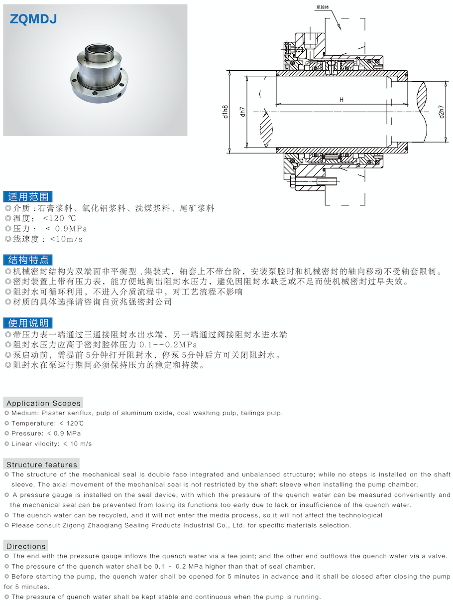 兆強(qiáng)ZQMDJ   集裝式雙端面 渣漿泵/脫硫泵用機(jī)械密封兆強(qiáng)ZQMDJ   集裝式雙端面 渣漿泵/脫硫泵用機(jī)械密封